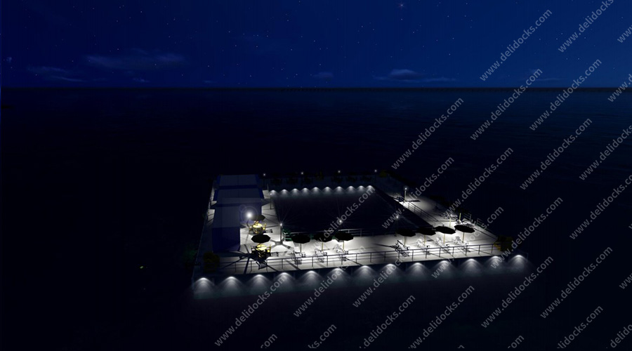 It is leisure fishing platform,planned to build in Daya Bay.On the platform,it planned to install mooring,sailing signal system and life-saving equipment.The platform can contain about 70 person for fishing.The fishing area is diameter 20m,at night,there are five small houses on it,which can be used in storage room and coffee bar.