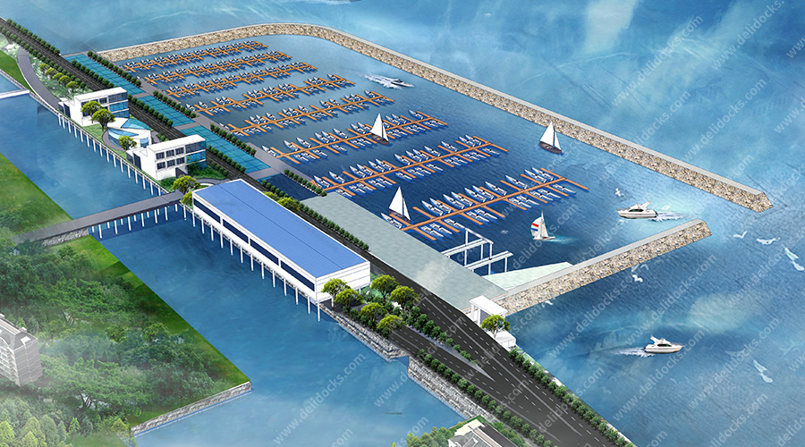 This yacht marina is located in Tai Lake tourism resort,Huzhou city.The yacht marina was designed to be “artistic,innovative and sustainable”.The concept is novel and bold,focusing on large-scale landscape architecture and multi-level traddic flow system design.The shape space structure emphasizes the water and open space system.