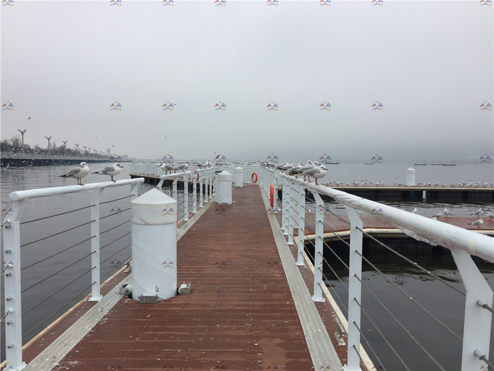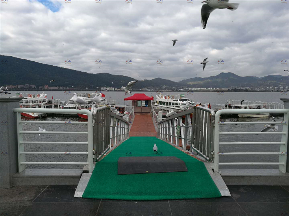 • Project Scale: Two floating terminals with a total area of 1,068 square meters, utilizing 208 meters of shoreline and 20,800 square meters of water area. Each floating terminal covers 534 square meters, equipped with one 12m×2.2m aluminum alloy movable gangway and 27 φ478×14mm steel pipe piles for positioning.
