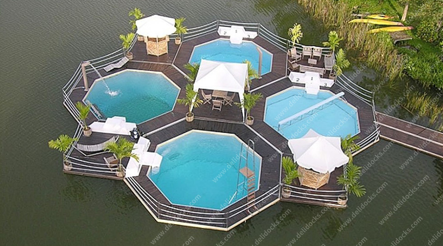Small swimming pool is widely used in private and public.Low cost than indoor swimming pool,the advanced cleaning equipment can keep the pool water clean and disinfecting.It can be installed on sea,the pool use fresh water which can make the person staying into it comfortably.