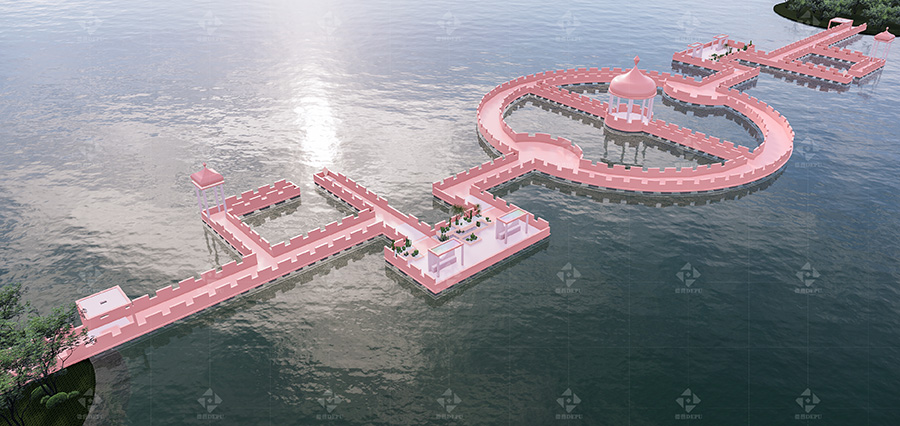 The internet celebrity themed floating bridge is characterized by bright colors and unique shapes, using rich and colorful decorative elements. The floating bridge is equipped with various interactive devices and experience projects, providing tourists with a rich and diverse entertainment experience. For example, internet celebrity check-in points can be set up for tourists to take photos as souvenirs, and art installations can be set up for tourists to enjoy and interact.