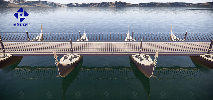 The Venice Gondola Boat Floating Bridge is a dynamic integrated floating bridge that integrates transportation, landscape, and culture. The construction of floating bridges maintains continuity in the transportation and ecological landscape of artificial islands in the lagoon, forming a harmonious and unified slow traffic system, thereby improving the environmental quality of the artificial island area in the lagoon. Its construction meets the needs of local residents for tourism, leisure, and sightseeing.